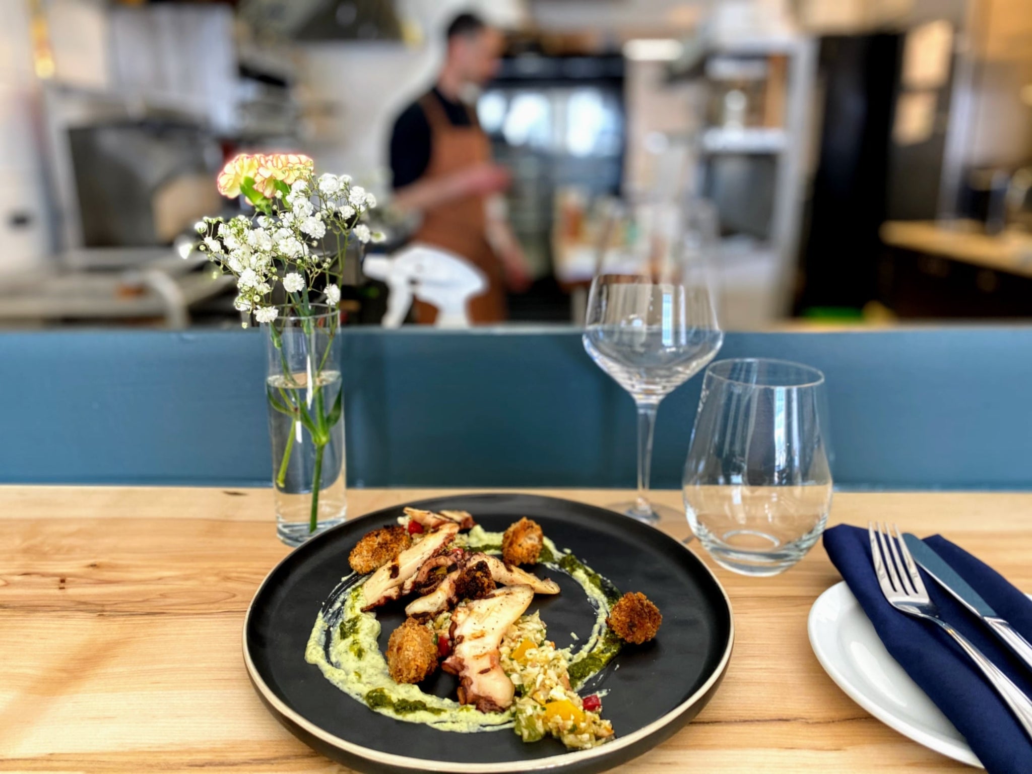 Enjoy a refined escape where the comfort of Hôtel Expérience Quartier des marinas meets the culinary excellence of Comptoir Marcel.